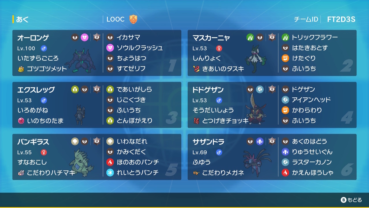 また、対戦中にもタイプ統一を崩さず、悪タイプのみでシーズンを戦い抜いたのは悪タイプを極めてる感があり、とても楽しかったです。
